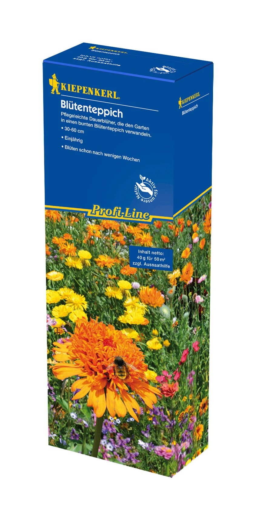 Pflegeleichte Dauerblüher, die den Garten in einen bunten Blütenteppich verwandeln. Schon wenige Wochen nach der Aussaat beginnt diese niedrigbleibende Blumenmischung in einem bunten Farbenspiel zu blühen. Die Blütenteppich-Mischung ist aus einer gezielten Auswahl niedriger Sommerblumen zusammengesetzt, die besonders standfest sind und auch nach einem leichten Sommergewitter nicht umfallen. Die enthaltenen Polsterpflanzen bedecken in kurzer Zeit die Beete und sorgen für einen dichten, pflegeleichten Blütenteppich. Unsere speziellen und vielseitigen Blumenmischungen bestehen aus 40 g hochwertigem Blumensaatgut und 100 g Aussaathilfe.