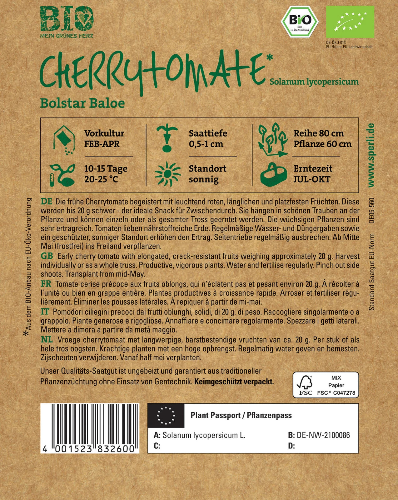 Die frühe Cherrytomate begeistert mit leuchtend roten, länglichen und platzfesten Früchten. Diese werden bis 20 g schwer – der ideale Snack für Zwischendurch. Sie hängen in schönen Trauben an der Pflanze und können einzeln oder als gesamter Tross geerntet werden. Die wüchsigen Pflanzen sind sehr ertragreich. Tomaten lieben nährstoffreiche Erde. Regelmäßige Wasser- und Düngergaben sowie ein geschützter, sonniger Standort erhöhen den Ertrag. Seitentriebe regelmäßig ausbrechen. Ab Mitte Mai (frostfrei) ins Freiland verpflanzen.