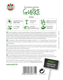 „Eiffel F1“ bildet rein weibliche Blüten aus und benötigt zur Bestäubung somit keine Insekten. Eignet sich hervorragend für den Gewächshausanbau. Produziert bis zu 30 cm lange, leicht geriefte Früchte, die etwa 400 g schwer werden. Eine gesunde und ertragreiche Sorte, die widerstandsfähig gegen verschiedene Gurkenkrankheiten ist.