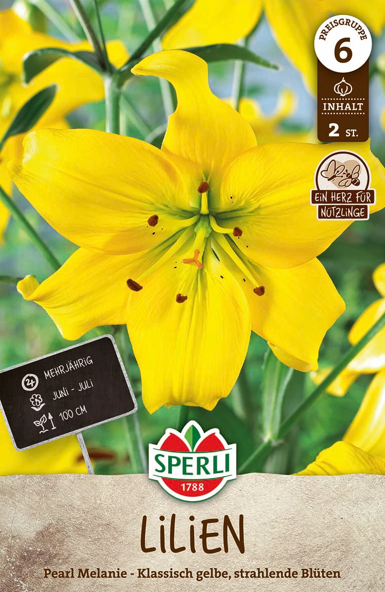 Die Asiatische Lilie ‚Pearl Melanie‘ ist ideal geeignet für alle, die die Farbe Rot lieben: Mit ihren strahlend roten Blüten ist diese Sorte ein richtiger Hingucker! ‚Pearl Melanie‘ entwickelt viele Blüten und wird Dir bei guter Pflege mehrjährig und ausdauernd Freude bereiten. Da die Sorte keinen Duft entwickelt, ist sie gut für Lilienliebhaber geeignet, die schwere, süße Düfte weniger gerne mögen. Im Juni und Juli zeigt die Asiatische Lilie ihre prächtigen Blüten, die als zusätzliche Nahrungsquelle für Insekten dienen. Mit einer Wuchshöhe von 100 cm passt ‚Pearl Melanie‘ in so ziemlich jedes Beet. Geschnitten für die Vase ergeben die Lilien haltbare Schnittblumen, die ein Highlight in Deinen vier Wänden abgeben werden.