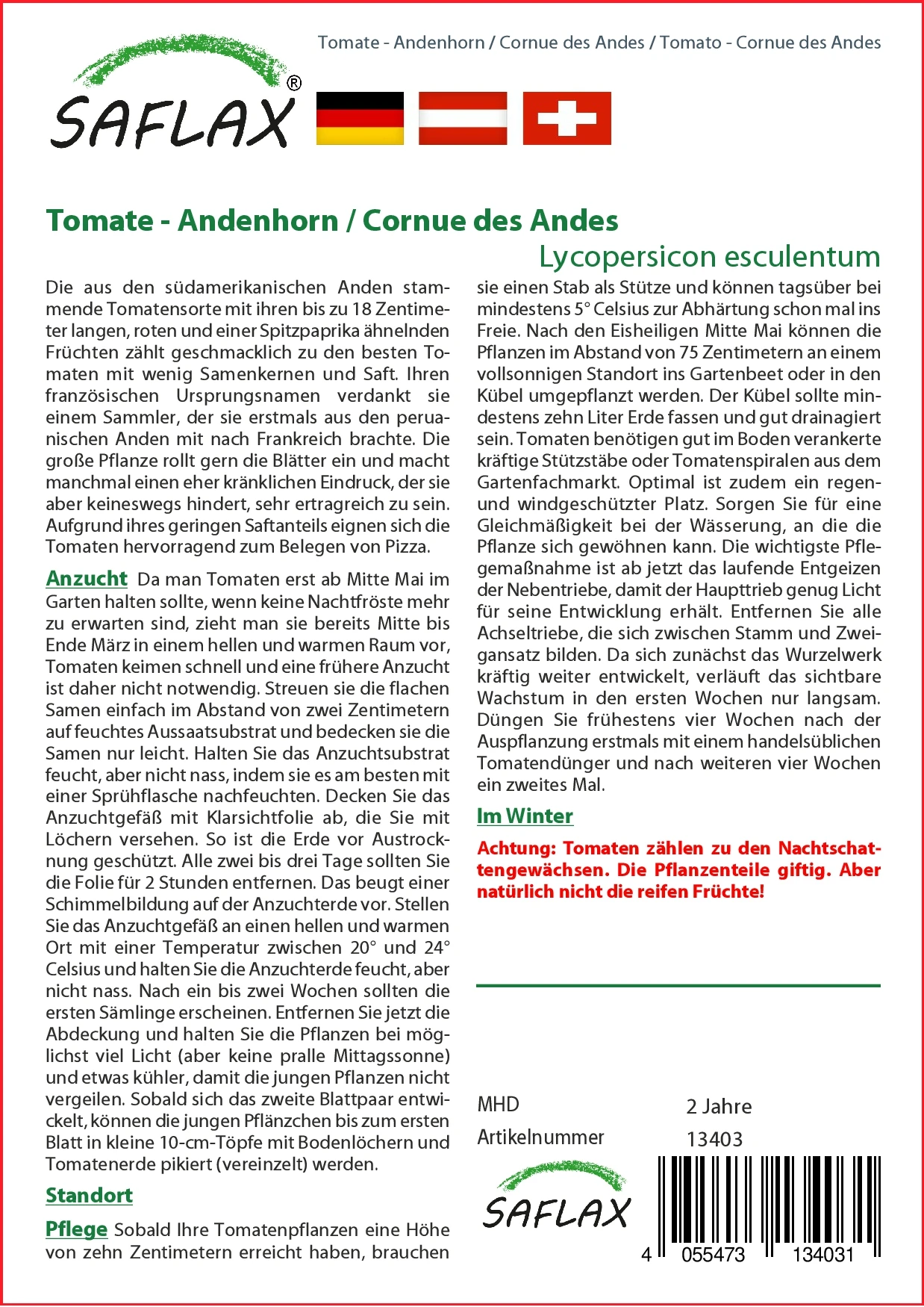 Die aus den südamerikanischen Anden stammende Tomatensorte mit ihren bis zu 18 Zentimeter langen, roten und einer Spitzpaprika ähnelnden Früchten zählt geschmacklich zu den besten Tomaten mit wenig Samenkernen und Saft. Ihren französischen Ursprungsnamen verdankt sie einem Sammler, der sie erstmals aus den peruanischen Anden mit nach Frankreich brachte. Die große Pflanze rollt gern die Blätter ein und macht manchmal einen eher kränklichen Eindruck, der sie aber keineswegs hindert, sehr ertragreich zu sein. Aufgrund ihres geringen Saftanteils eignen sich die Tomaten hervorragend zum Belegen von Pizza.